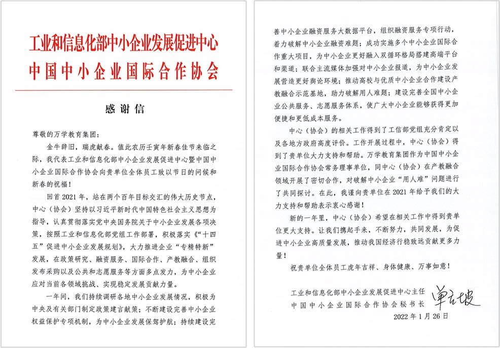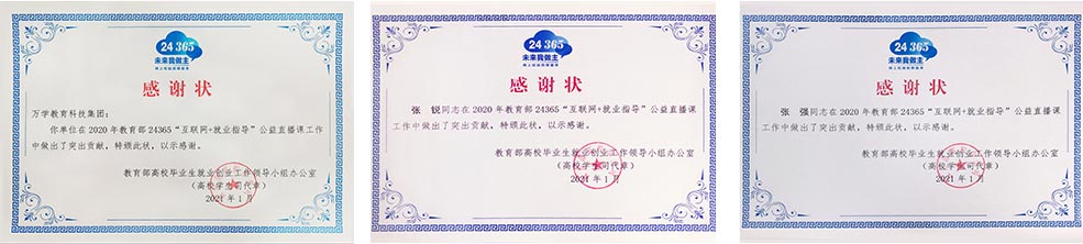 2020,万学由于在大学生教育多个领域的杰出成果,在更高层次荣获了中国教育行业的重量级荣誉,为kaiyun颁发了重磅感谢状。
